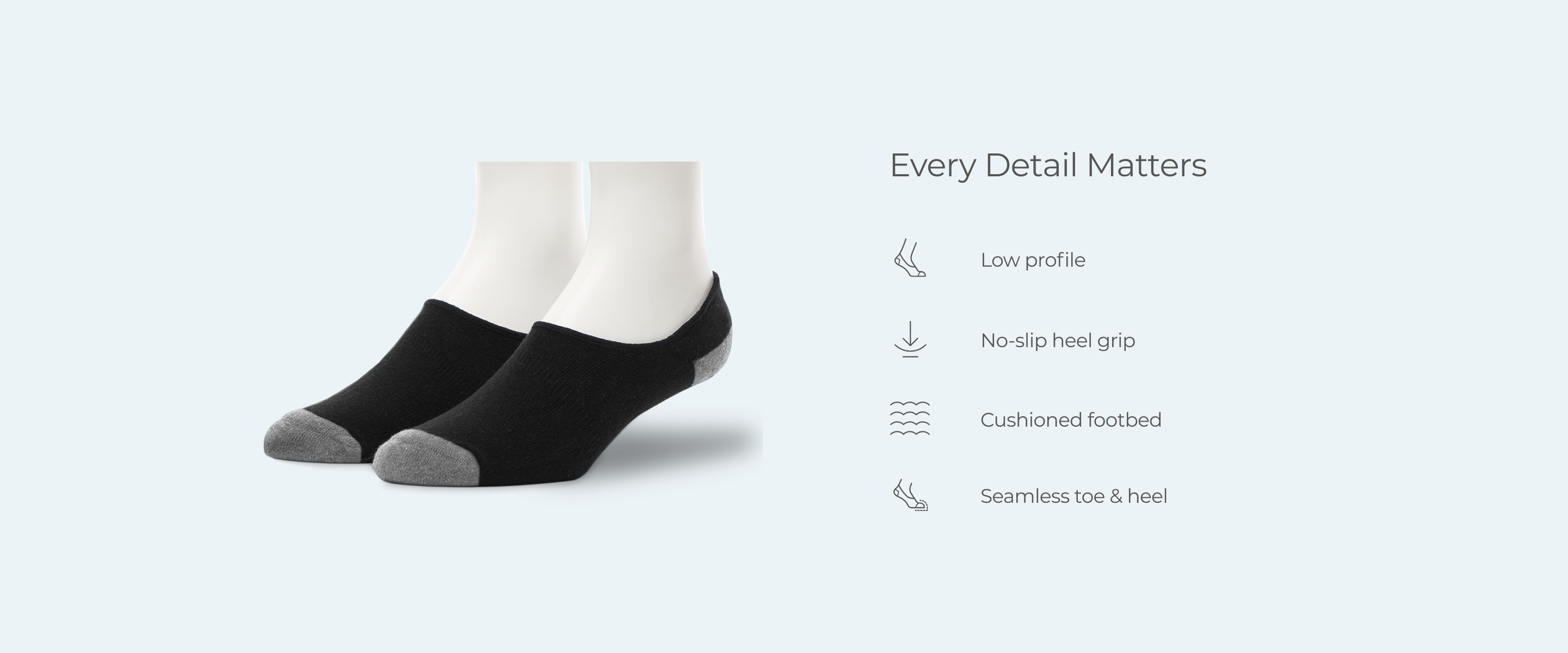 Combing cotton is the process of removing the shorter fibers, because the longer ones make for a much softer, more durable fabric. We combined combed cotton with enough stretch to keep these socks in place—and added a thick cushioned footbed for maximum comfort.